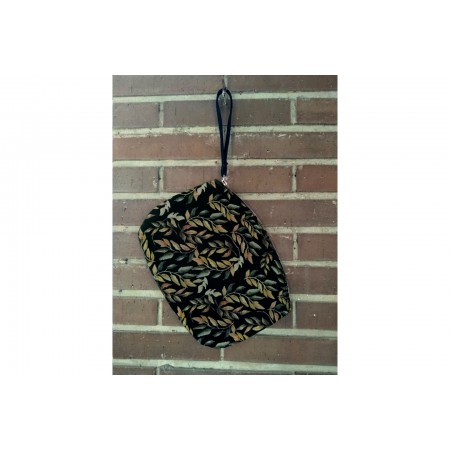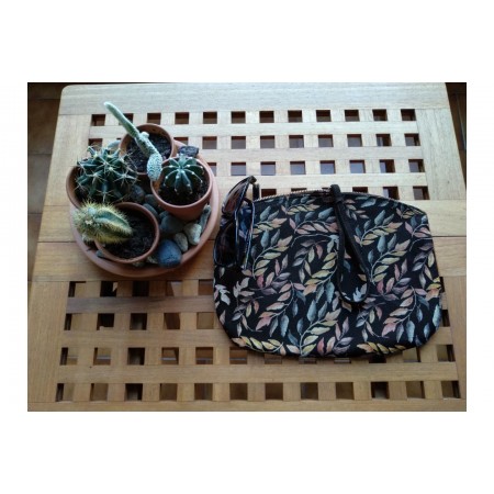 Bolso de mano con asa. Estampado inspirado en hojas con colores otoñales. El estampado está pintado a mano (posteriormente impreso digitalmente en el tejido). Es un complemento práctico, con un diseño artístico que le aporta un estilo muy personal y exclusivo adecuado para cualquier temporada.